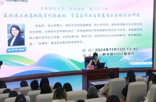 为营造浓厚的学术氛围,增进学术交流,拓展学术视野,1113日下午,科研处联合EMC易倍在第一教学楼1102报告厅举办了吉财善水讲坛第二十二讲学术活动,邀请EMC易倍刘金桥副教授做了题为东北老工业基地教育代际流动、贫富差距与生育意愿关系的实证研究学术报告。本次报告会由EMC易倍副经理李舸主持,EMC易倍全体教师和部分员工代表参会。