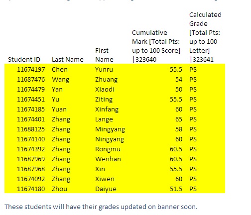 CSU关于ACC384补考成绩的部分更正。