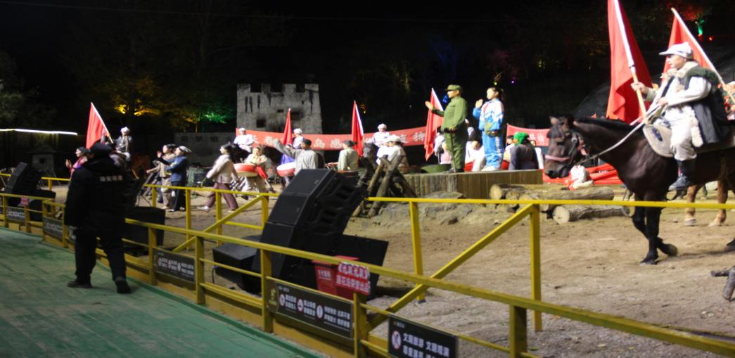 主题团日在莲花岛红色实景剧《抗联抗联》的现场进行。全体师生共同观看了实景剧《抗联抗联》。该剧以东北抗日联军艰苦抗战经历为创作背景,融合马术、武术、舞蹈、烟雾弹等多种表演形式及特技、特效,以“老兵”石头回忆为叙事主线,通过《军令》《舍己》《就义》《传承》四幕场景,生动再现了抗联战士们英勇抗击侵略者的历史场景。
