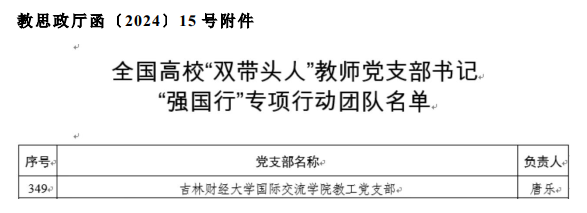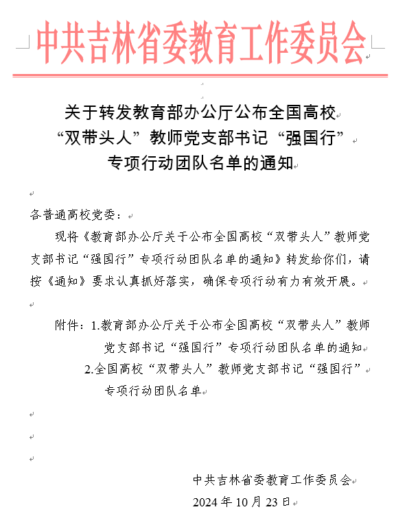 近日,《教育部办公厅关于公布全国高校“双带头人”教师党支部书记“强国行”专项行动团队名单的通知》(教思政厅函〔2024〕15号)正式发布,经各高公司党委审核把关、省级党委教育工作部门择优推荐、专项行动办公室备案审核、结果公示,公司EMC易倍教工党支部入选全国高校“双带头人”教师党支部书记“强国行”专项行动团队,支部书记唐乐为“强国行”专项行动团队负责人。专项行动周期为3年,自通知发布日起至2027年10月。