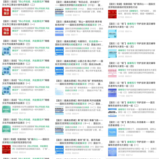 此次疫情期间,公司公众号开辟《奋楫笃行,守护吉财》、《疫有尽、爱无穷》等专栏,报道一线辅导员和志愿者先进事迹;开展《同心齐抗疫,共赴繁花开》抗疫网络作品征集展示活动、《“艺”起战疫》线上才艺大比拼、《“宿说青春,同心抗疫”》寝室VLOG大赛等形式多样的员工活动丰富疫情期间的员工生活。截止目前,微信公众号已发布抗疫相关报道72件;视频号累积创作抗疫题材10余个,累积播放量超70000人次,累积点赞转发量超3000人次。