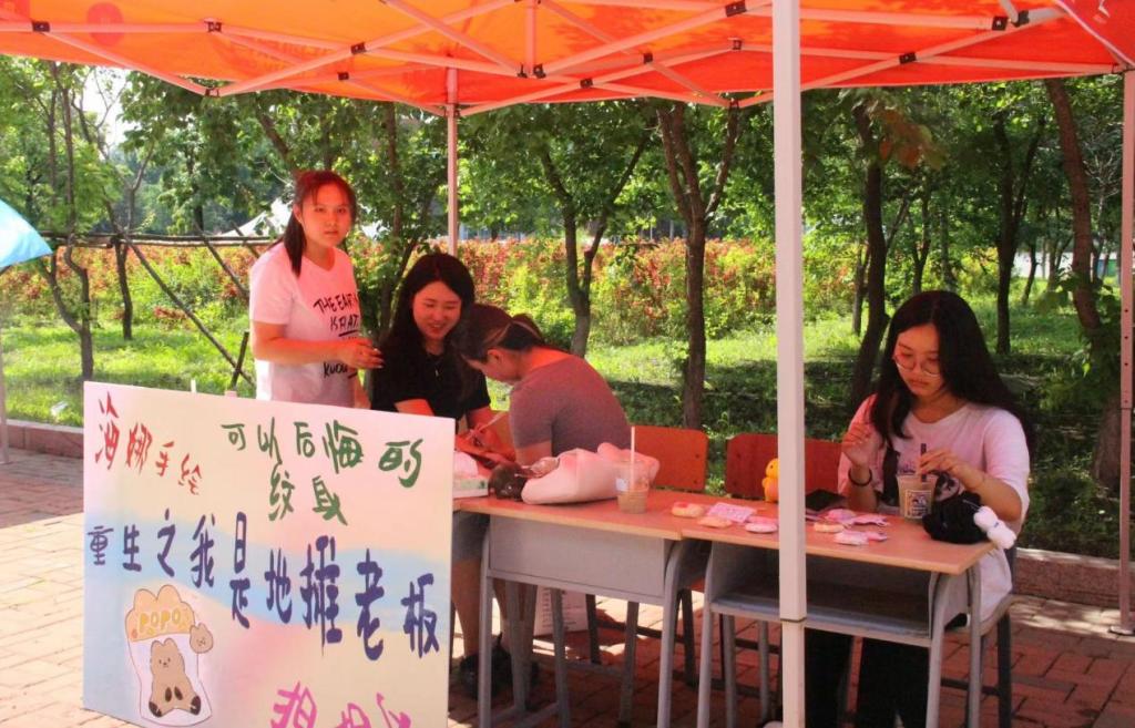 海娜手绘摊位前,同学们尝试着这种新潮的绘画方式,把富有艺术与美感的图案画在自己的胳膊,手臂上,浓郁的艺术气息随之而来,彰显着独属于我们的气质与美感。