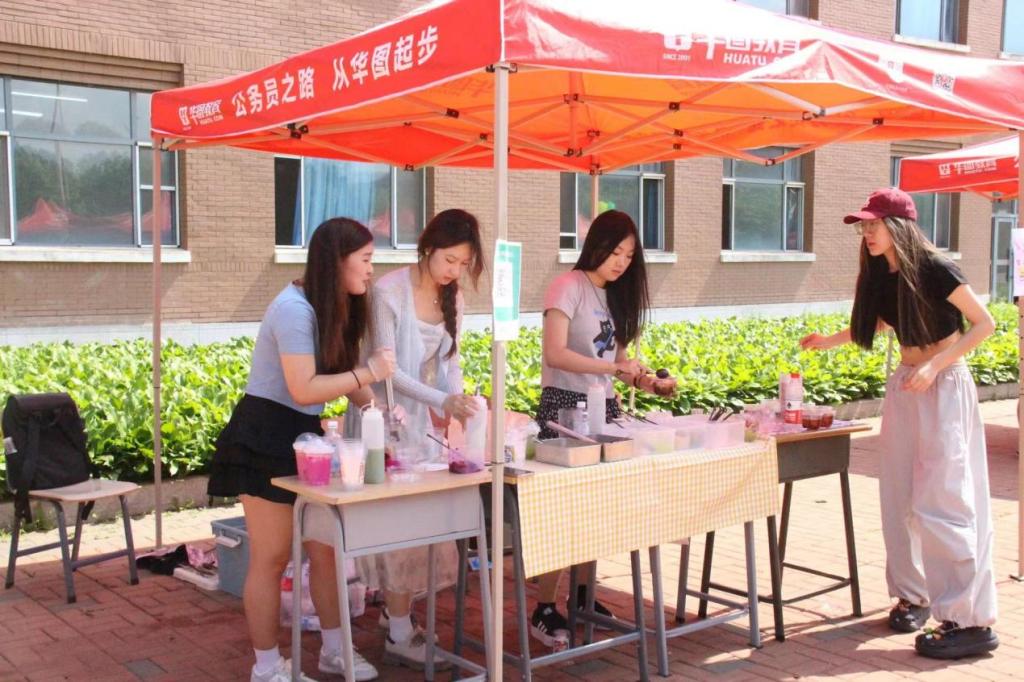 鸭脖大作战、冰粉等美食摊位前更是人气爆棚,自制的鸭脖、特色冷饮,散发着诱人的香气。品尝着同学亲手制作的美食,味蕾间绽放的是满满的同窗情谊。
