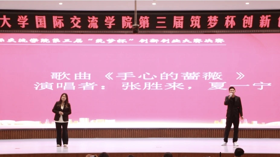 在大赛即将结束时,张胜来和夏一宁同学为大家献唱《手心的蔷薇》。