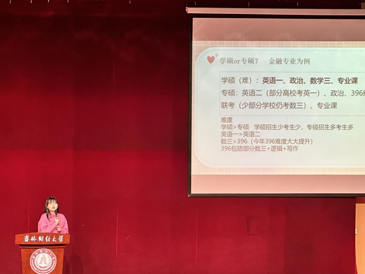 第一位是国交会计2090班的张熙悦学姐,已被录取至东北财经大学审计专业。张熙悦学姐深入浅出地讲解,为大家指明择校的方向,应提早关注院校和考试大纲,对报考比例有清晰认知。找到最适合自己的学习方法。不要盲从经验贴,根据自身情况选择适合自己的备考方案。最后,学姐也对备考中出现的进度落后、知识点遗忘等问题提出指导性建议。