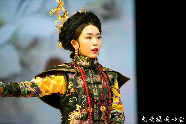 参赛选手身着古代服饰,以历史时间轴依次展现各自所扮演的历史人物,展现各朝代的语言、服饰文化。酩酊大醉的李白,抚琴轻弹的伯牙,英姿飒爽的花木兰……历史上的人物穿越时光的隧道跃然于舞台之上。