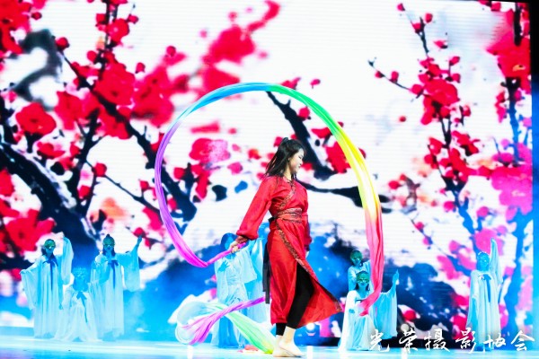 晚会在舞蹈《墨舞山河》中拉开帷幕,水墨丹青勾勒祖国的盛世容颜,流光异彩描绘祖国的灿烂文化。悠悠琴声,衣袖舞动间我们历尽了千年岁月,那一抹汉唐古风蕴藏着千载华夏文明,引领观众走入文化的复兴之路。